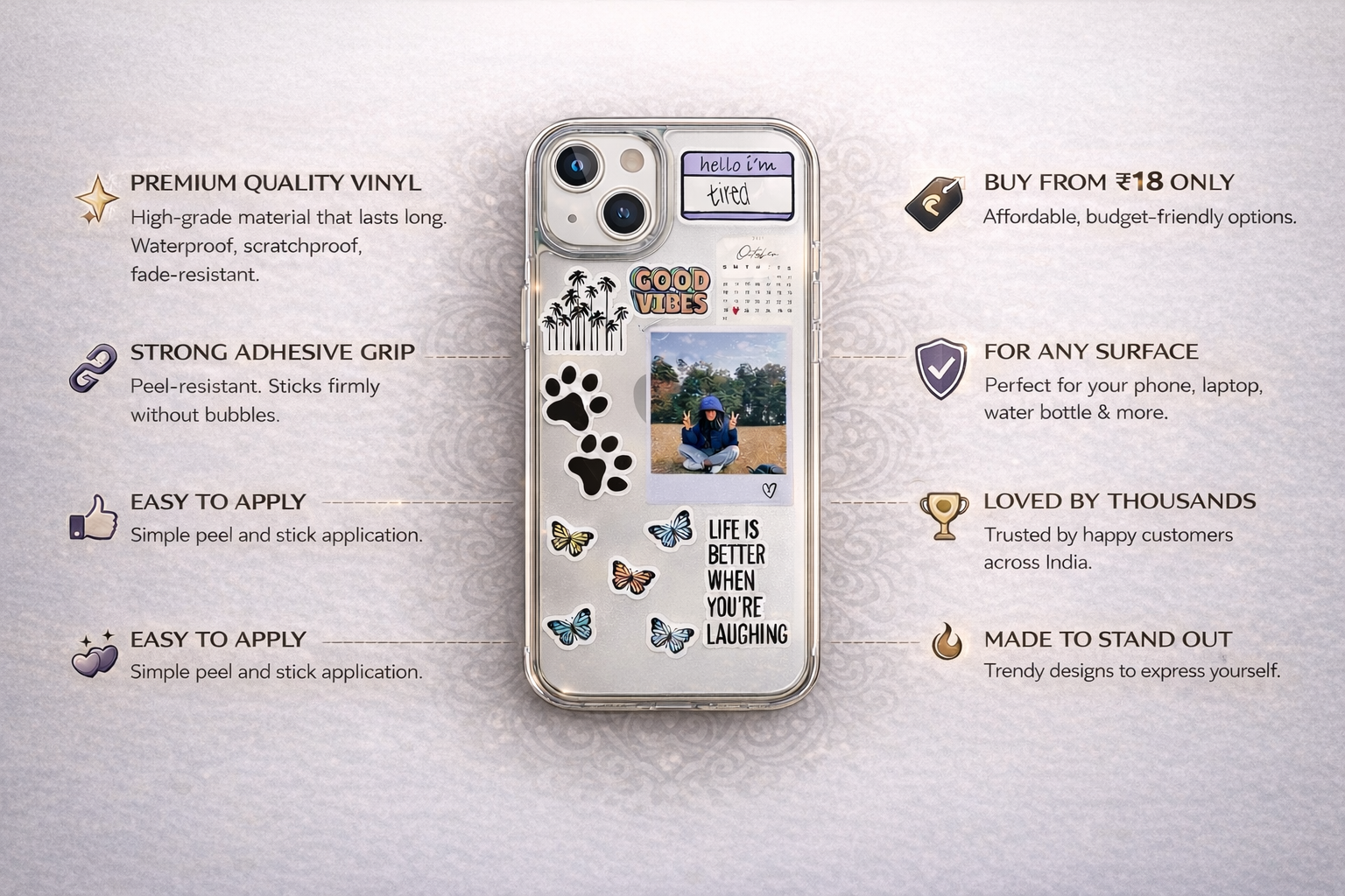 Each sticker is waterproof, weather-resistant, and long-lasting. The colors stay vibrant. The adhesive stays strong, even in Indian weather conditions.